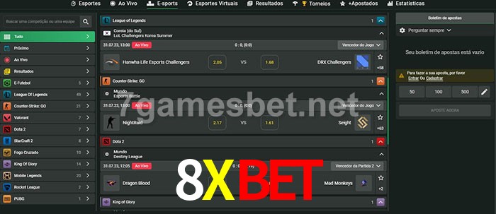 O 8Xbet oferece uma grande seleção de opções de apostas em e-sports com probabilidades competitivas